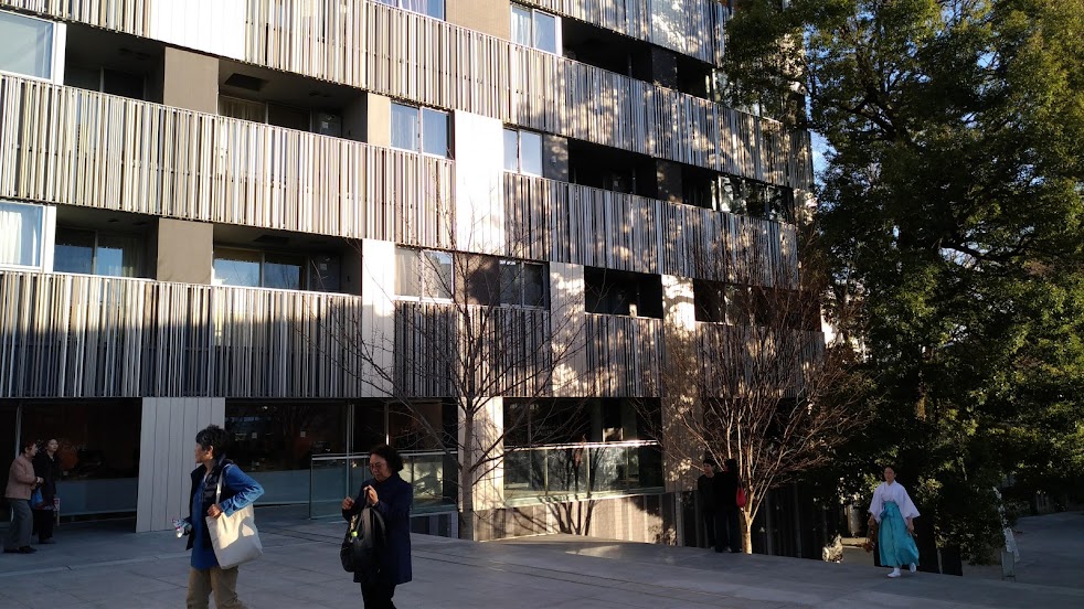 後來在2009年的重生計畫中,由三井不動產主導,請來負建築大師隈研吾,打造一個充滿日式禪風的新生活圈,神社旁原本就已存在的赤城咖啡,也以全新風貌融入這項計畫中。